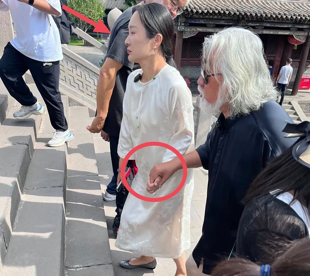 74岁张纪中到大同市华严寺游玩,他和老婆牵手走阶梯,杜星霖的脸色好难看,感觉有点