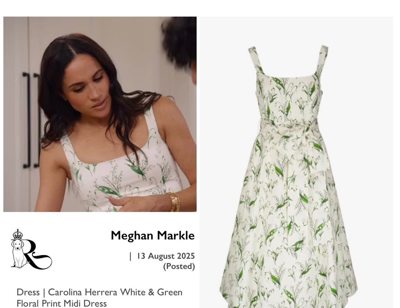 我做沙拉的时候,也得穿上我的Carolina Herrera(2590美元)才行呢~不然怎么配得上我的贵族气质? 笑死,她永远在镜头前不是做饭就是摆果盘那头油乎乎的头发甩来甩去,汗津津的手还非要碰遍所有食材。 这条裙子的价格简直离谱! 既没有独特印花,面料也平平无奇,凭什么敢卖18600元人民币? 看起来不过是条60年代风格的普通束腰太阳裙—— 而且明显小了一码。 到底是谁在给这位女士做造型?