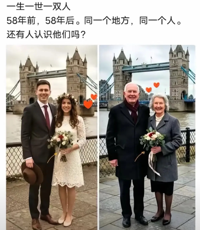 应该伦敦塔桥,伦敦的标志性建筑之一。不认识图片是谁,但是从图一的合影来看几乎不可能是1967年(2025年倒推58年),那个年代西方的穿着可不这样。