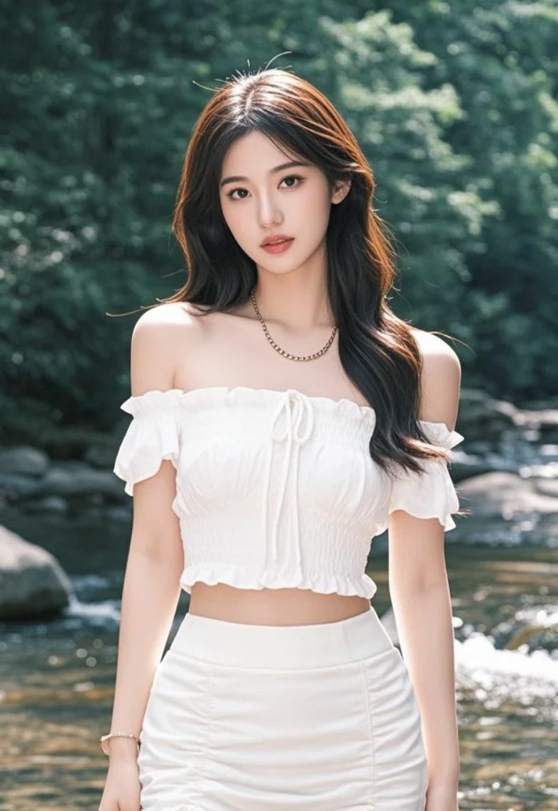 她弯腰掬水,仿佛捧起整个夏天的清凉