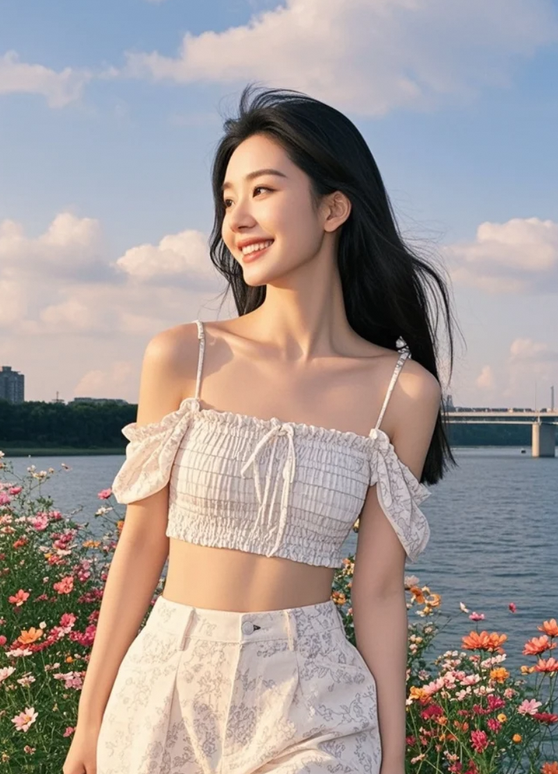花开半夏,她在江畔低眉,像一首未写完的诗