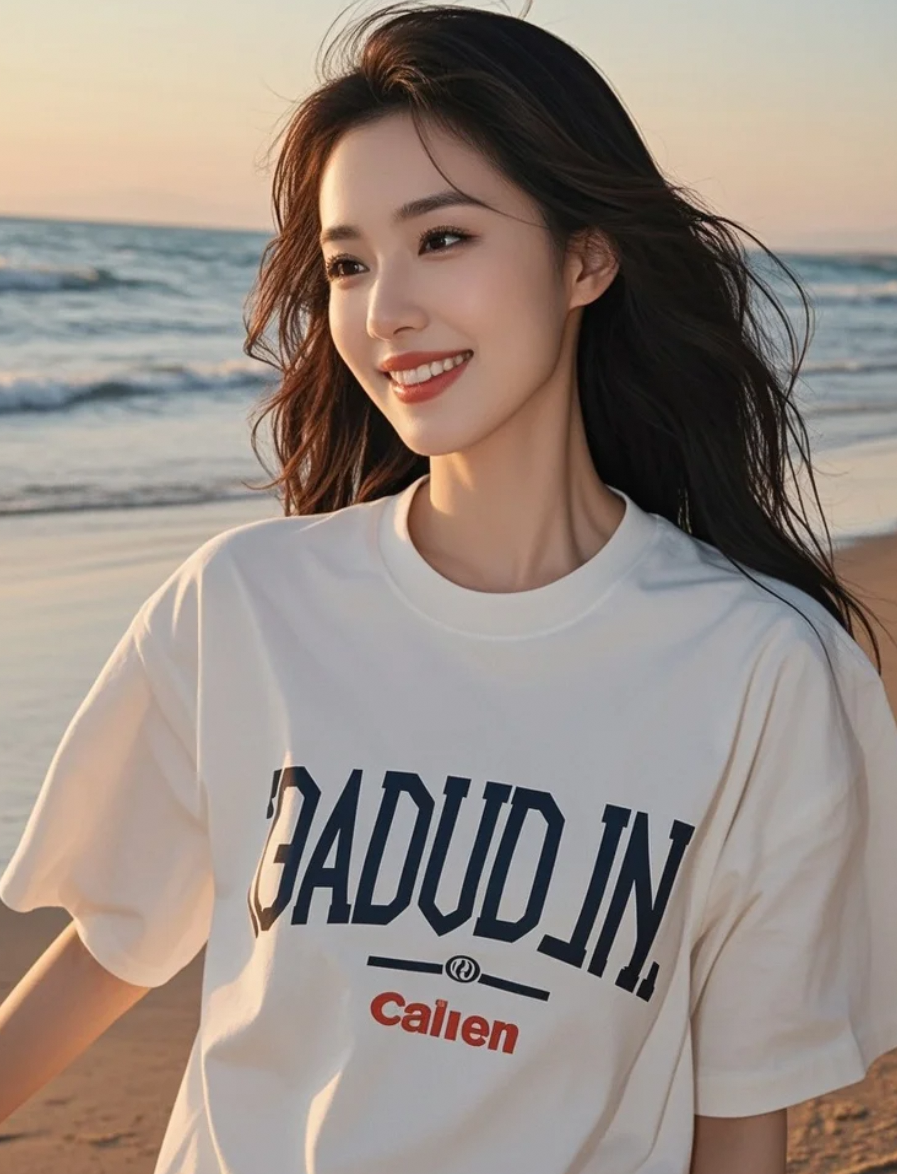 云朵为她驻足,她唇色明艳,T恤休闲中透出不容忽视的精致感