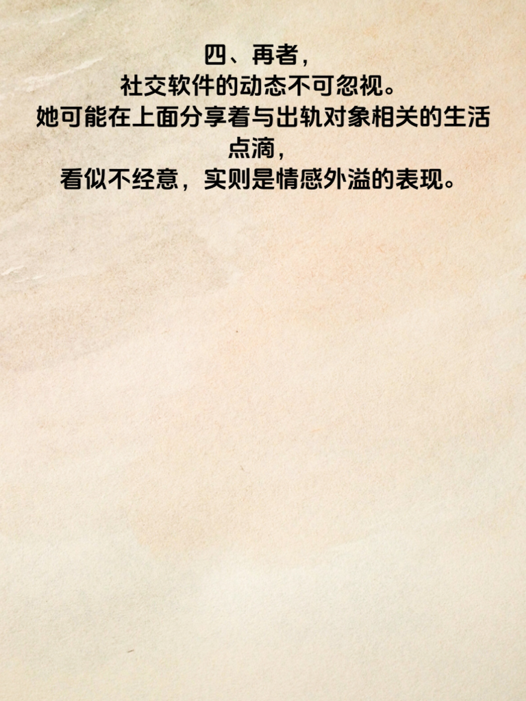 一、婚内出轨,女人手机藏着5个秘密。手机,在这个数字化时代,已然成为了人们生活中不可或缺的一部分,对于婚内出轨的女人而言,更是藏着诸多不为人知的秘密。 二、首先,聊天记录是关键。那些与出轨对象频繁交流的话语,或许藏在某个不起眼的聊天框里。甜言蜜语、暧昧暗示,都可能成为婚姻破裂的导火索。 三、其次,相册也有玄机。可能存有与出轨对象的合照,或是一些只有他们能懂的场景照片,这些都是背叛婚姻的证据。 四、再者,社交软件的动态不可忽视。她可能在上面分享着与出轨对象相关的生活点滴,看似不经意,实则是情感外溢的表现。 五、另外,支付记录或许能透露蛛丝马迹。给对方买礼物、一起消费的记录,都可能显示出这段不该有的关系。 六、最后,定位信息也值得留意。她可能会通过定位软件,知晓出轨对象的行踪,以便安排见面。了解这些秘密,或许能让你看清婚姻中的真相。