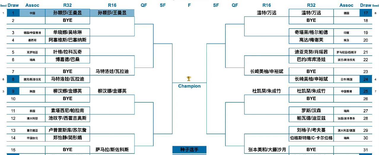 女双签表在这儿呢, WTT欧洲大满贯瑞典站女双签表如图所示。 莎莎、曼昱加油[奋