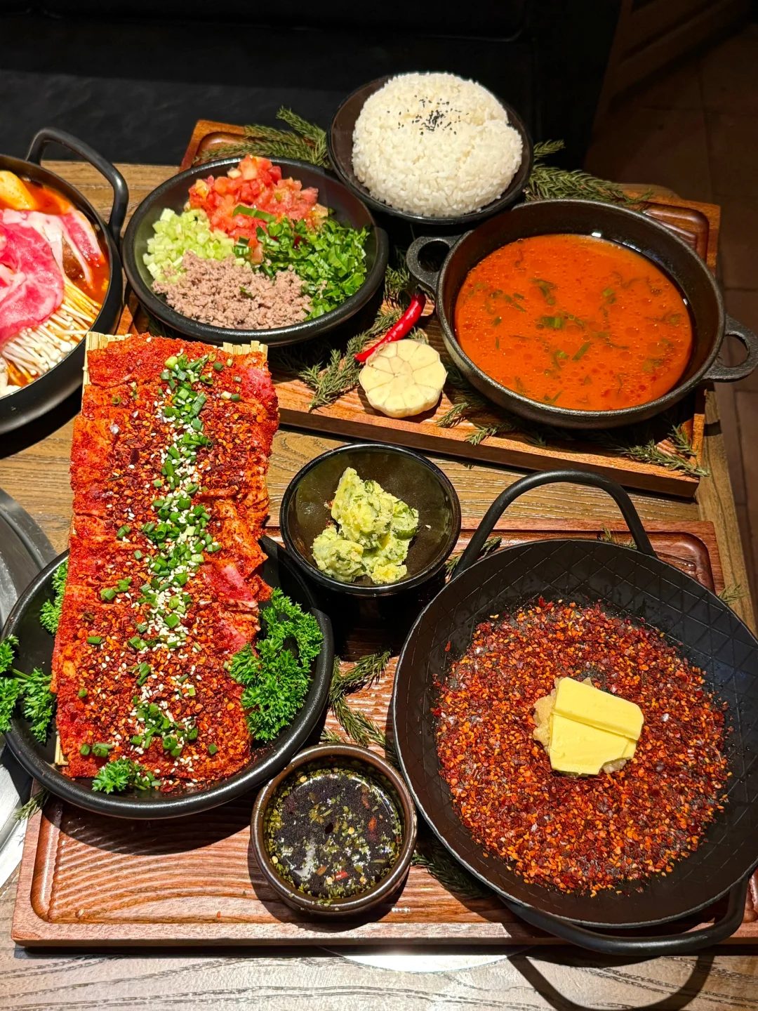 还有韩式正宗泡菜锅🍲,黄油蒜香姬松茸🍄🟫,超拉丝番茄肉酱焗意面🍝,辣炒芝士年糕🫕,金枪鱼鱼籽拌饭🥙…每一样都好吃不踩雷!