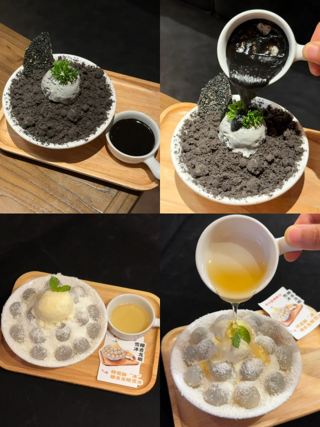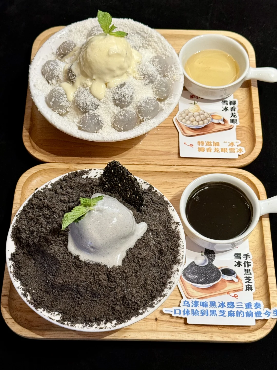 手作黑芝麻雪冰和椰香龙眼雪冰,搭配烤肉真的很不错!