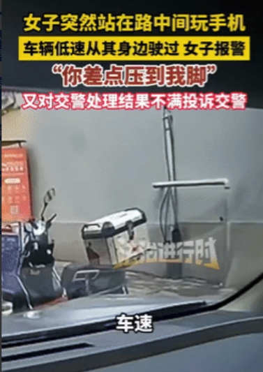 据法治进行时8月15日的报道,一辆小车车主在网上发布了行车记录仪视频,如实记录了事发全过程,他正低速行驶,小心翼翼避让前方一位站在行车道中间埋头看手机的女子。