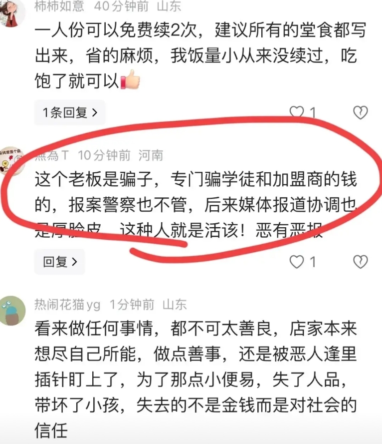 第一,站老板这边的人觉得:小本生意经不起这么薅。 面粉不值钱,但人工、房租都是成本,续一次是情分,续到没完没了就是没边界。老板开门是赚钱的,不是做慈善,要是人人都这么续,买卖还怎么做?拒绝续面,是守住了生意的底线。