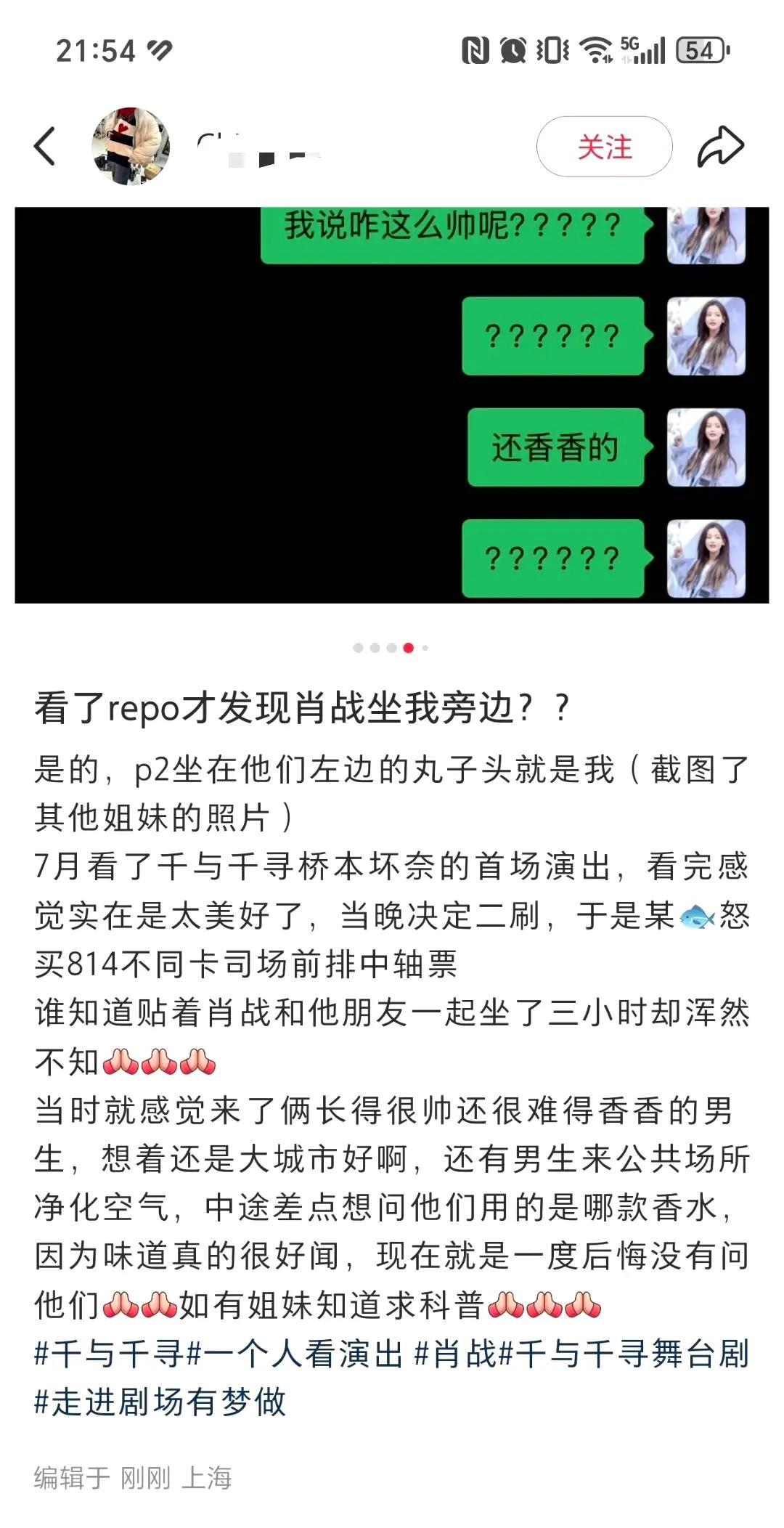 终于看到这个虽有幸坐他俩旁边但是愣是没想到那又香又帅的俩人是肖战和大波的观众了……