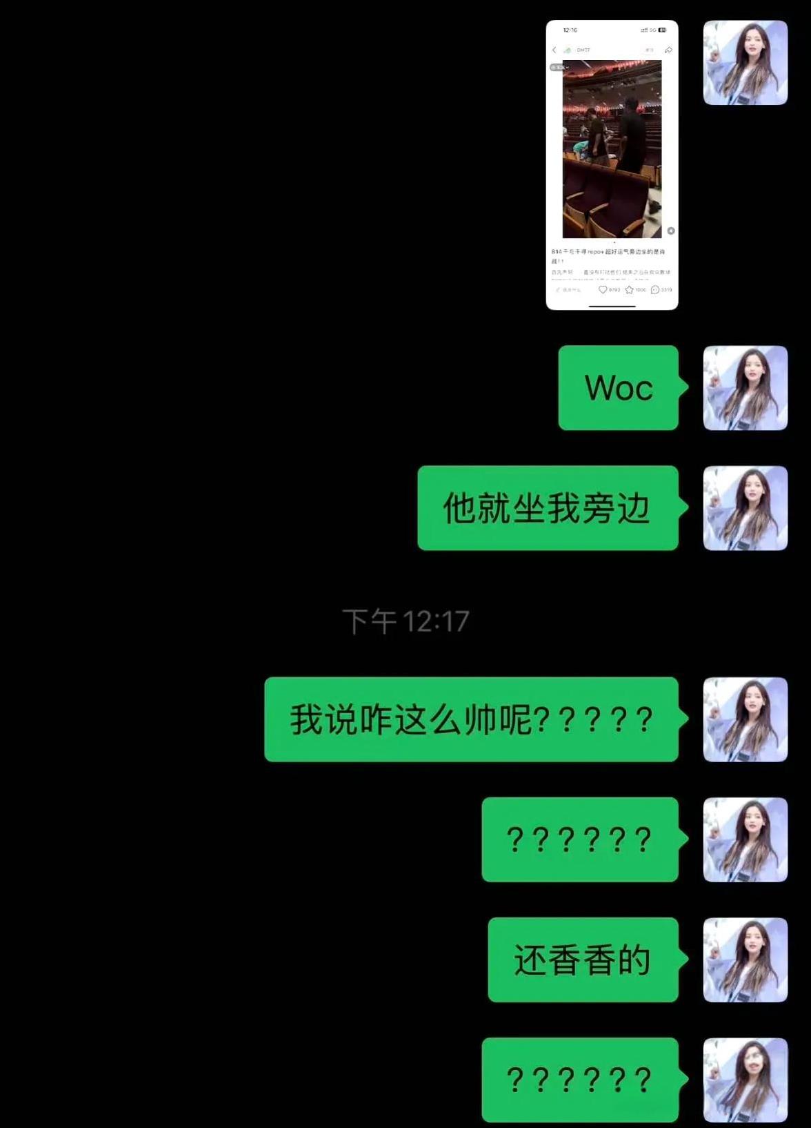 终于看到这个虽有幸坐他俩旁边但是愣是没想到那又香又帅的俩人是肖战和大波的观众了…
