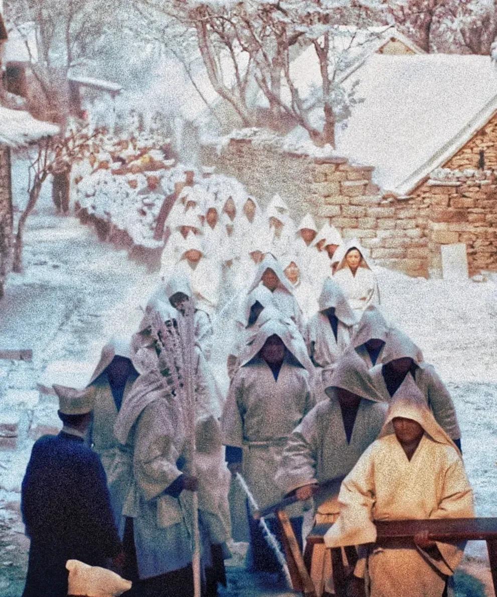 《生万物》史诗级的出殡,让婚礼与葬礼,形成了鲜明的对比。 绣绣娘的葬礼着实令人震