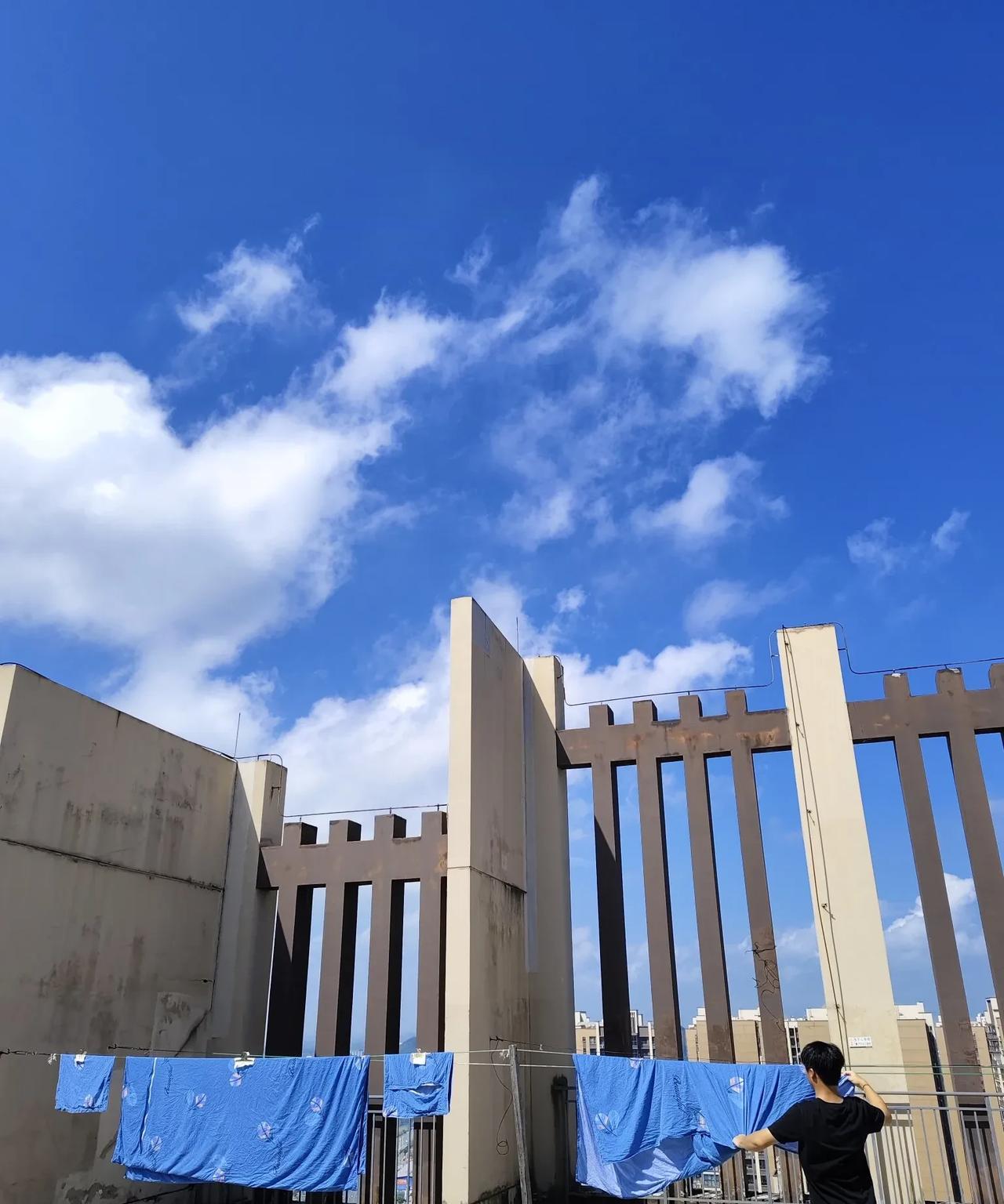 我家儿子,是真着急,还有那么久才开学,早就把被子打包好了。今天订做的5件套也拿回来了。 5件套包括:盖的被子1.5米宽,2米长的被罩。铺垫的90公分宽,2米长的的被罩。还有1.5米宽,2米长的床单,两个中号枕巾。 本来订做床上用品店的老板说,那个铺垫直接做了被罩,不用再做床单的。我觉得洗铺垫被罩的时候不方便,还是又加了床单。这样就是一共做了5件。 定做的5件套,纯棉的床上用品,一共才花了290块钱,如果不加那个床单本来是240块钱,另外50块钱的床单后面又补加的。你们看看,订做实在太便宜了吧。 今天早上,还不到9点钟,儿子已经把订做的五件套洗好了。 此刻,儿子正把洗好的5件套拿楼顶晾晒,天气也是架势,蓝天白云大太阳。 你们家准大学生,去上学的行李准备好了吗?是自己带,还是到学校买的呢?