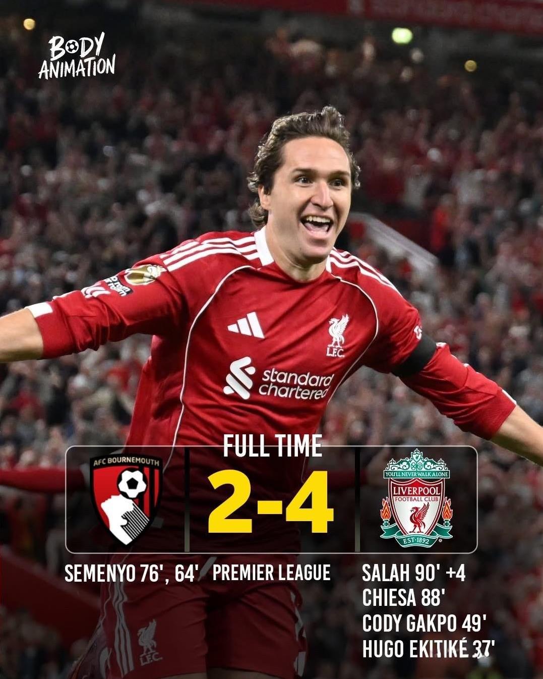 卫冕冠军强势回归!!! 利物浦主教练斯洛特在赛后感性发言: “每次2比2的时候,我第一个想起的,都会是若塔。” 真的令人泪目啊。 英超联赛第一轮,利物浦坐镇主场对阵伯恩茅斯,在一度2比0领先的情况下被对手扳平2比2,难道要在揭幕战丢分吗? 此时,替补席已经没有了若塔,但小基耶萨迎难而上。 这一脚凌空抽射绝杀,真的技惊四座,同时也是小基耶萨的英超首球,这会不会是改变他红军生涯命运的关键一球? 3比2,利物浦绝杀! 读秒阶段,远藤航的解围变助攻,萨拉赫用一种非常“若塔”的方式破门,利物浦终于锁定胜局,以4比2击败了伯恩茅斯,如愿取得赛季开门红! 前场四位前锋都有进球,但后防真的要补一补啊,科纳特心不在焉,范戴克状态下滑...... 看到埃基蒂克的传射建功,相信红军球迷已经知道,伊萨克并不是必需品,与其拿1.2亿去买前锋,说真的不如补强后卫吧。 图六:利物浦足球俱乐部新赛季的开局和上赛季的结束一样,太棒了