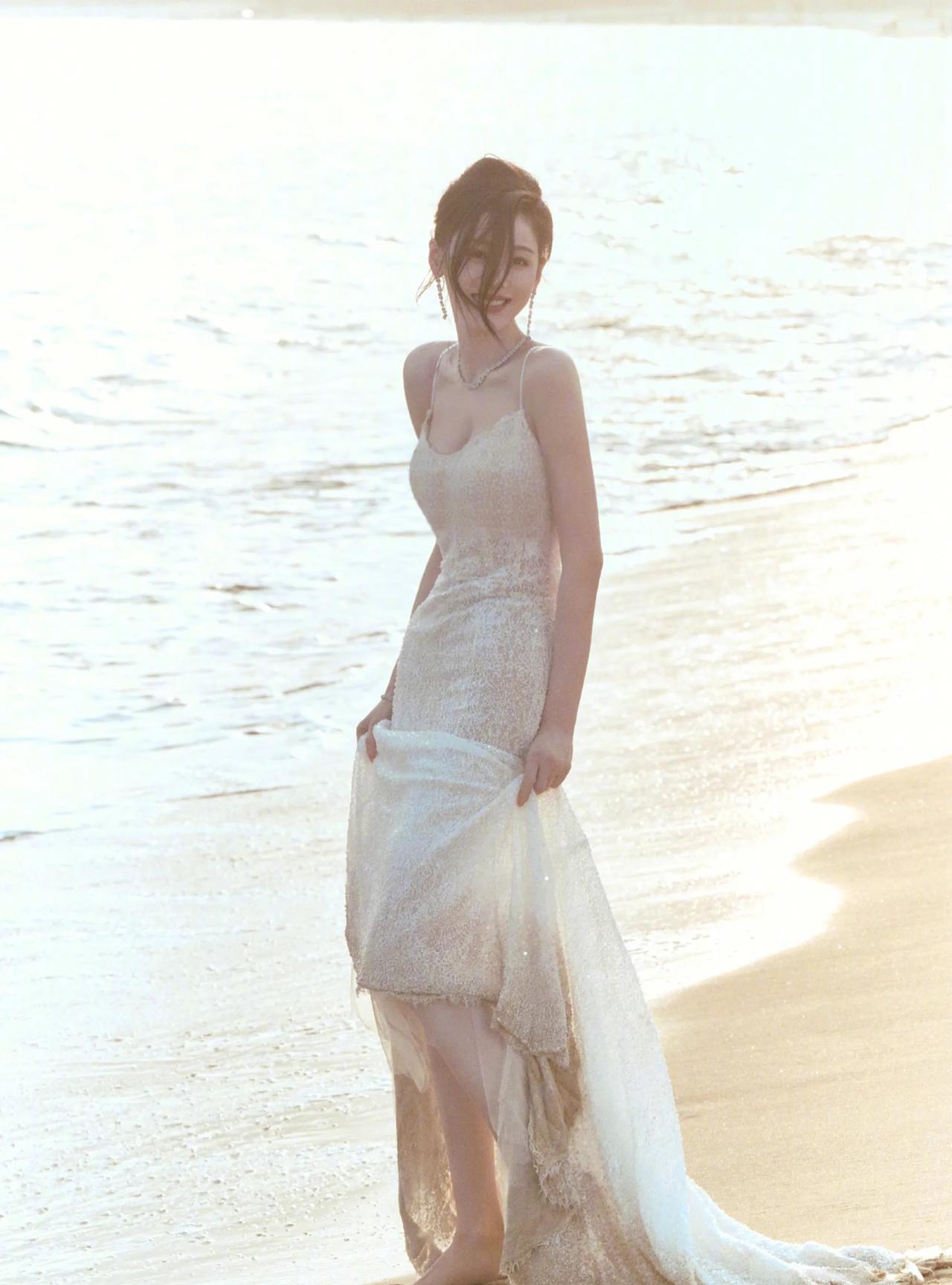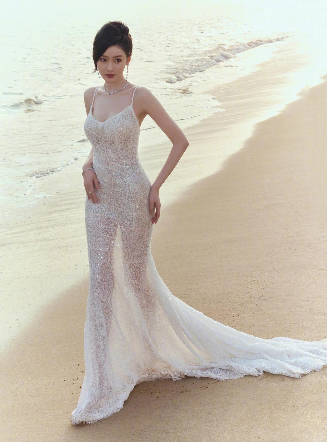 张天爱穿白蕾丝裙绝了!皮肤白到发光,表情清冷又勾人,各种姿势大秀魔鬼身材,美到开