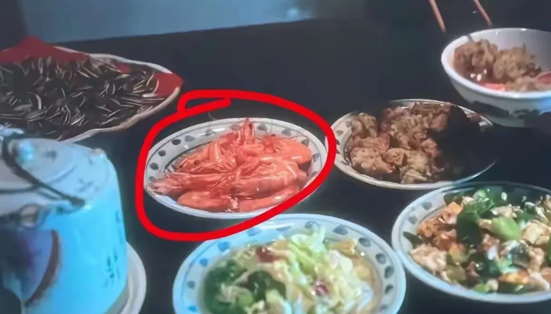 那个年代都吃不上喝不上的,可是看到这几个镜头明白了,原来不但能吃肉,还有火锅,大虾呢,荤素搭配真是不错。