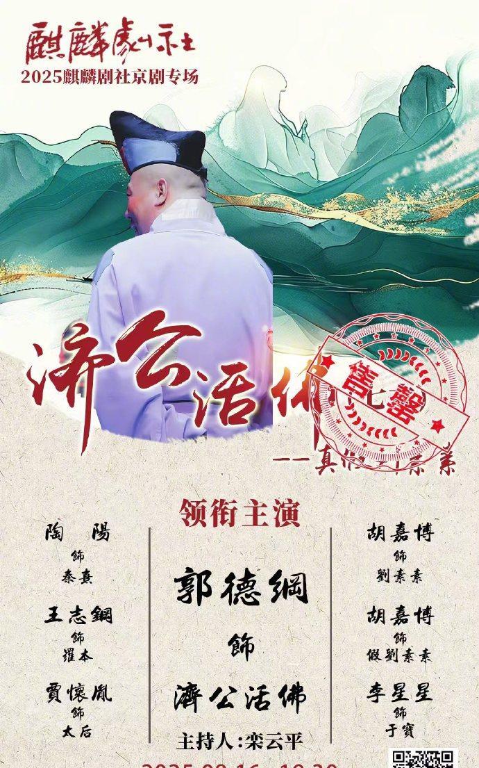 郭德纲发文,文案中提到了石家庄唱戏,并配上了三张照片。郭德纲说道:石家庄两天京剧演出,15日全本孙安,7点半演到12点,京剧演出破纪录。16日济公活佛,票已售罄。这应该是戏曲存活的最佳方式。第一张照片,是昨晚郭德纲石家庄的演出照。第二张、第三张,是今晚《济公活佛》第七本门票售罄的官宣海报。