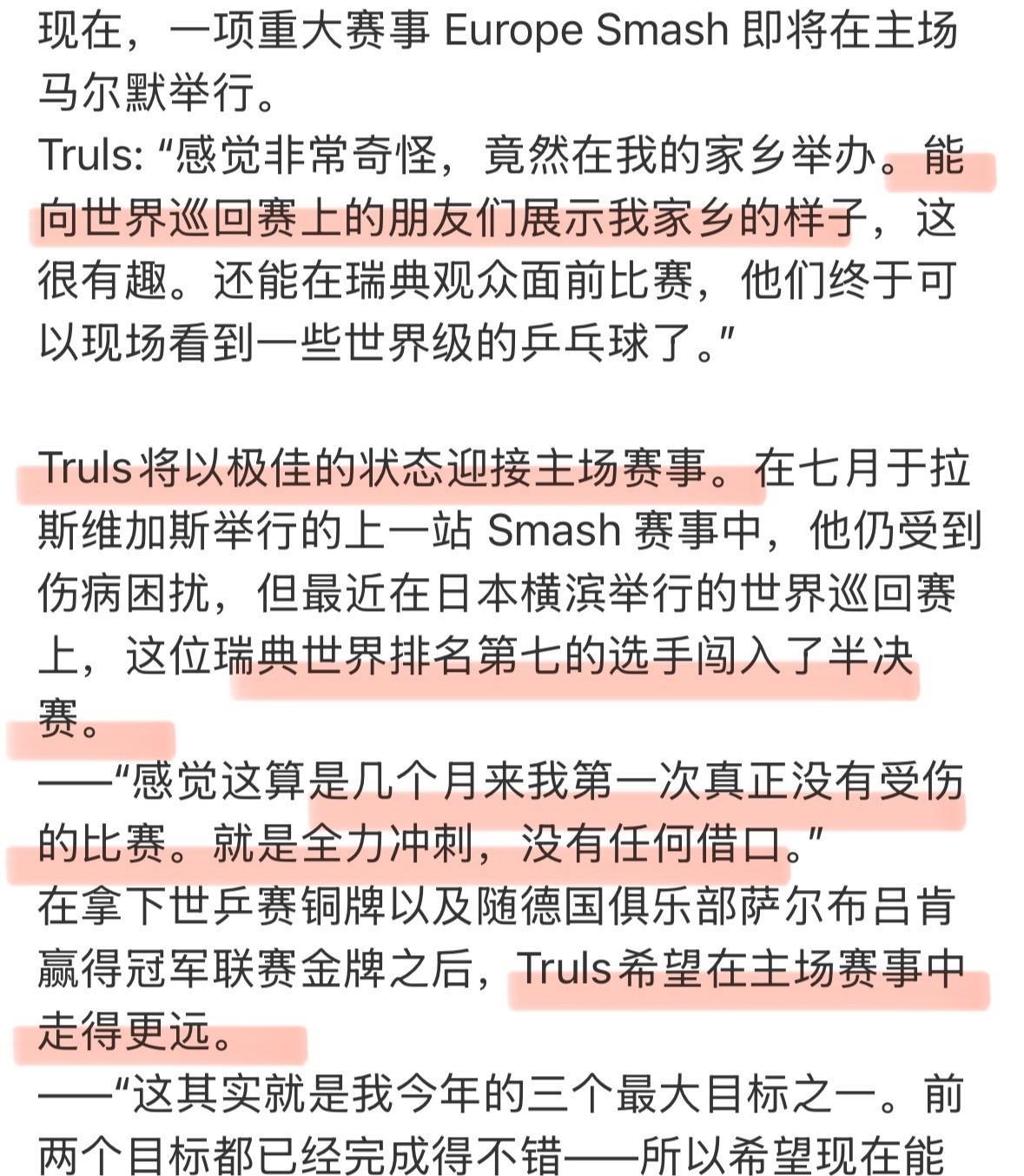 太阳真打西边出来了,莫雷加德正在瑞典恢弘表决心:我要拿瑞典大满贯男单冠军!冲! 莫雷加德,著名的大赛型选手,WTT苦手。 台湾解说在解说林昀儒的比赛时,最近会伤心地说一句,他都两年冠军荒了,2023年法兰克福冠军赛之后,林昀儒就没有进过决赛。 莫雷加德就一直荒着,他真的没啥国际赛金牌可言,但是一枚奥运男单银牌掏出来,能让所有外协抱头痛哭。 比实绩,他绝对笑傲江湖,第一次上奥运会,美美冲入决赛,破世界第一王楚钦、胜巴西Goat雨果。 他在巴黎奥运会前,一直很为自己的积分刷不上来而忧郁,他无法像卡尔伯格那样,直接以瑞典最高排名、近期极佳表现,毫无争议锁定头号种子身份。 莫雷加德苦苦等着佩尔森的垂怜,他一直在待定席。 在最后一刻,佩尔森毒辣的眼光帮他做了个改变乒坛的决定:第二个名额,我决定给莫雷加德。他虽然近期状态不咋的,但我感觉这是他爆发的前兆。 19号种子横空出世! 但是瑞典大满贯可是在小莫的家乡马尔默举行。 莫雷加德自己开始给自己上压力:这是我几个月来,第一次真正没有受伤的比赛。我要全力冲刺!我不给自己任何借口! 我在横滨冠军赛冲到了四强,这一次我要走得更远! 比四强更远的是,亚军和冠军。 小莫拿亚军的故事,已经举世闻名,瑞典人都看过了,要给老家人民惊喜,只有冠军了。 非常好笑的是,幼年小莫就开始勇夺银牌。 他甚至蝉联过两届世青赛亚军。 其实WTT大满贯赛事上,还从来没有出现过外协男单冠军。 小莫甚至把瑞典大满贯作为自己的三大目标之一,他前两个已经全部实现了,一个多哈世乒赛男单拿牌,一个是德国俱乐部萨尔布吕肯赢得冠军联赛金牌。 看看奥运史上最大的黑马小莫这次能不能点石成金。 瑞典大满贯赛前,小莫史无前例不再松弛,他在训练场挥汗如雨,和自己的小伙伴们张本智和、小勒布伦、林昀儒、奥恰洛夫练球。