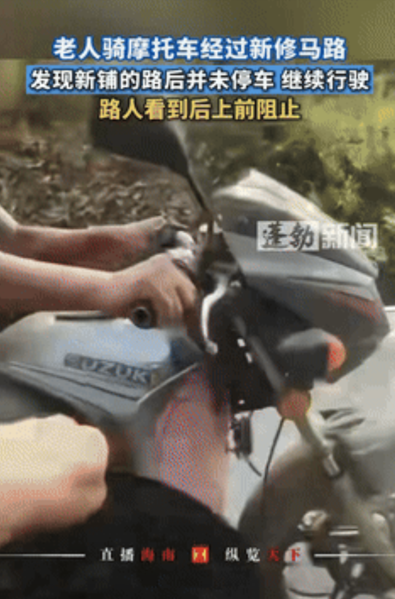 “缺德冒烟了!”湖北襄阳,一大爷骑摩托车,经过新铺的水泥路时,果断骑车压了过去,