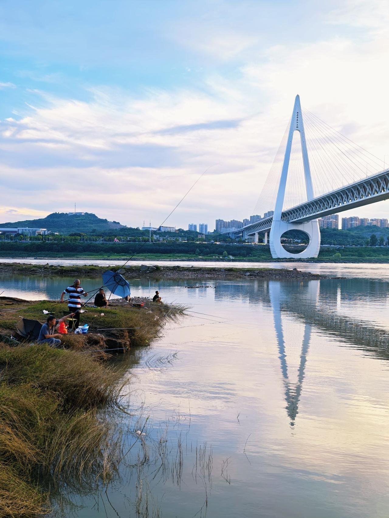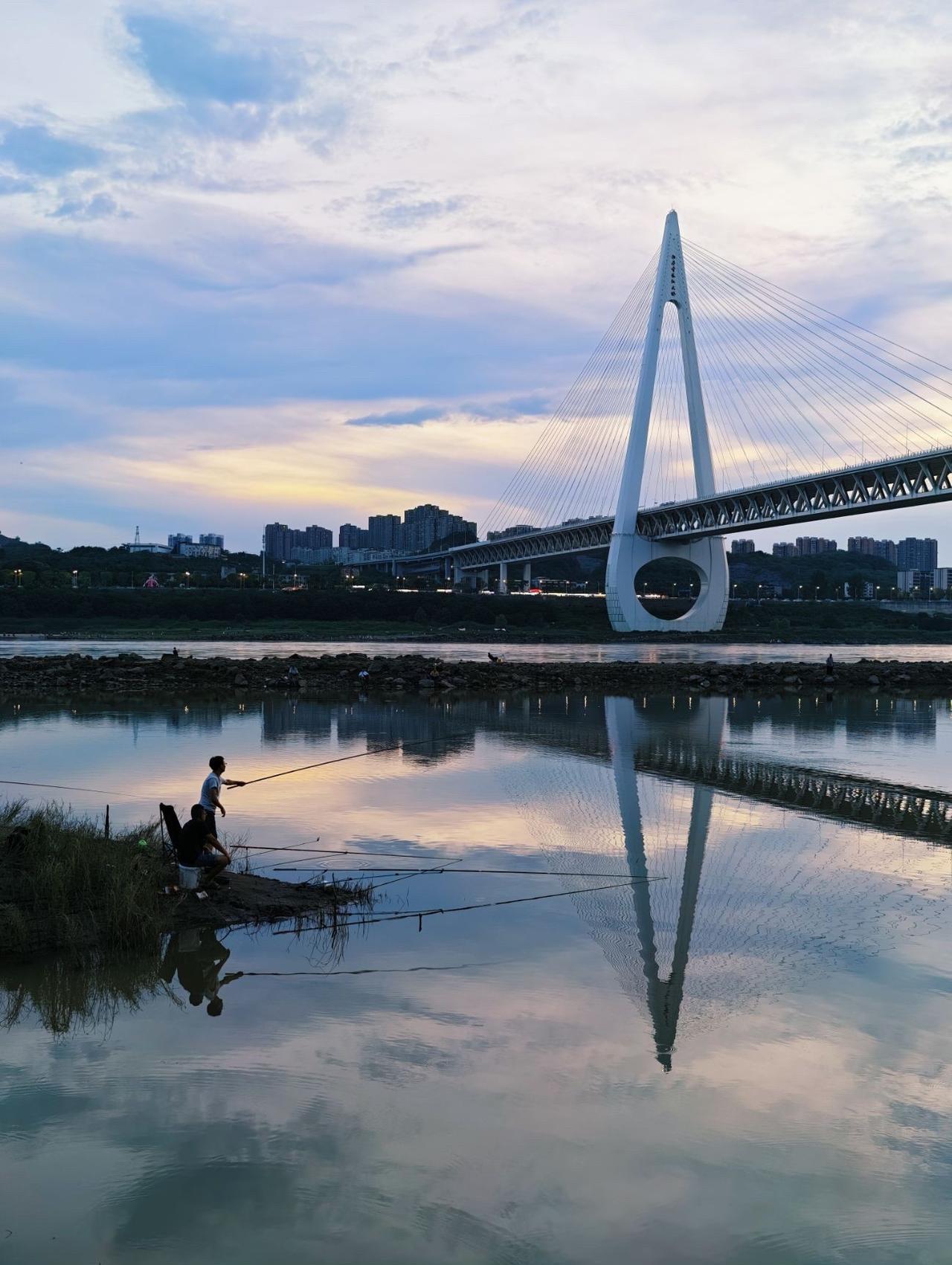 最近,很多钓鱼爱好者去重庆白居寺大桥下的巴滨路湿地公园钓鱼,傍晚时分,夕阳西下,风光无限好!8月16日和15日,台风杨柳给重庆人送上了大礼,降温,舒爽,晚霞。 #光线摄影世界曾兰谈天说地# #头号创作者激励计划#