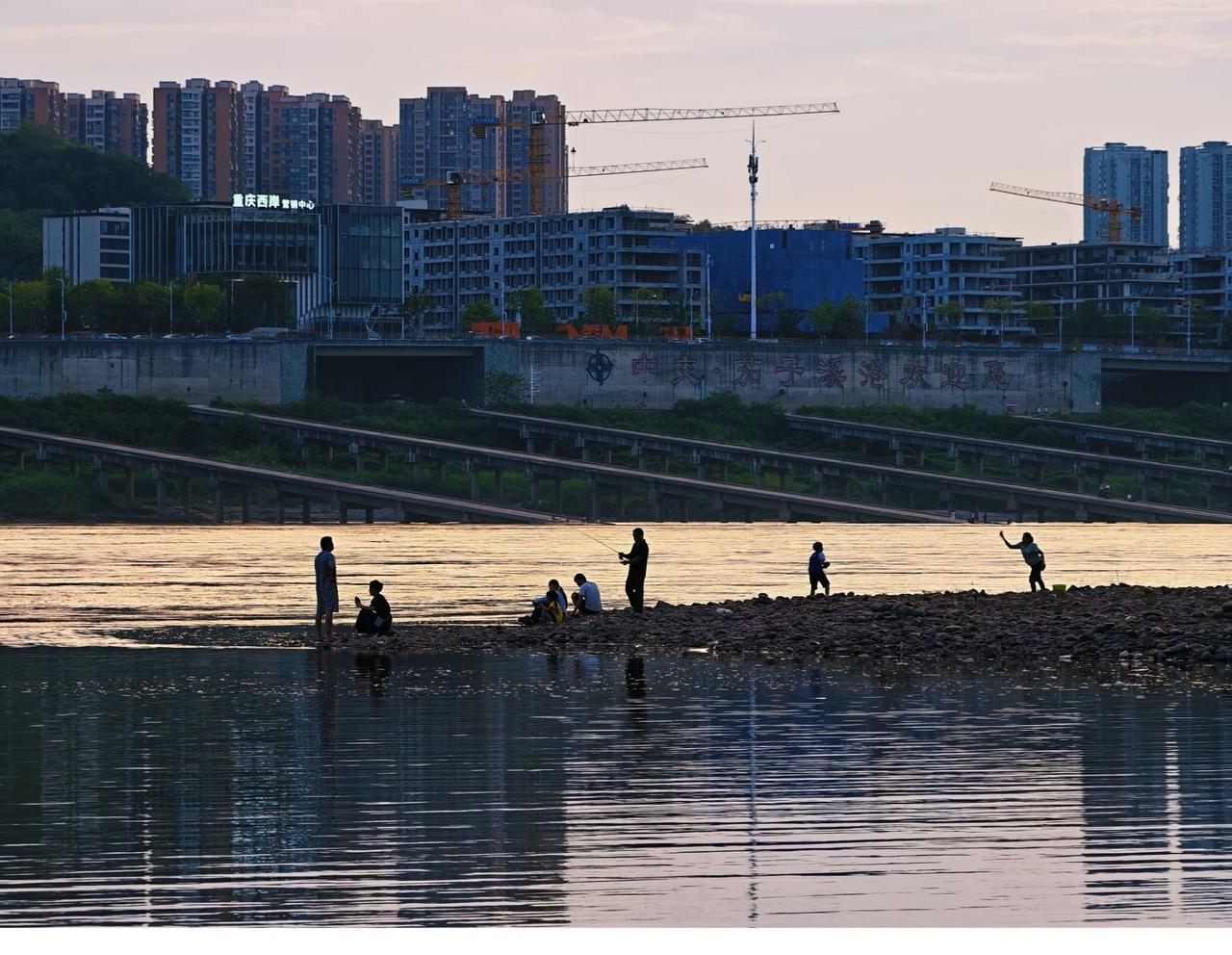 最近,很多钓鱼爱好者去重庆白居寺大桥下的巴滨路湿地公园钓鱼,傍晚时分,夕阳西下,