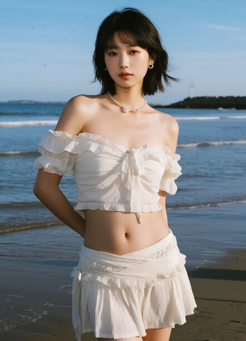 她穿的这身衣服,和芦苇海搭吗?1分(不搭)到10分(绝配),打分!