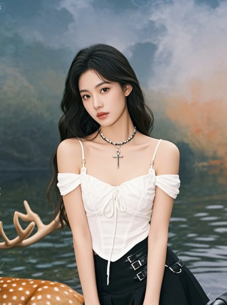 她的倒影在溪中晃,美得让水都忘了流动