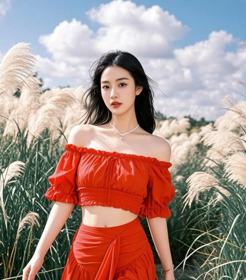 女子步入芦苇海,一步一景,恍若古画中走出的