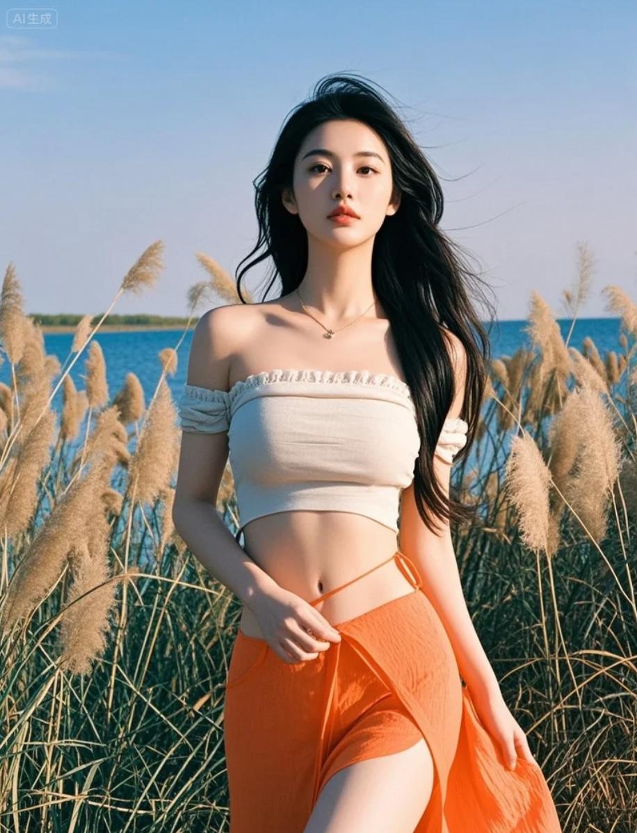 【超现实】她悬浮于芦苇海上空,发丝与芦花一同飘散,现实与幻想的边界模糊。