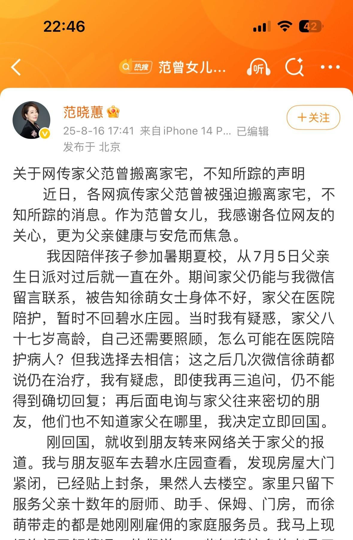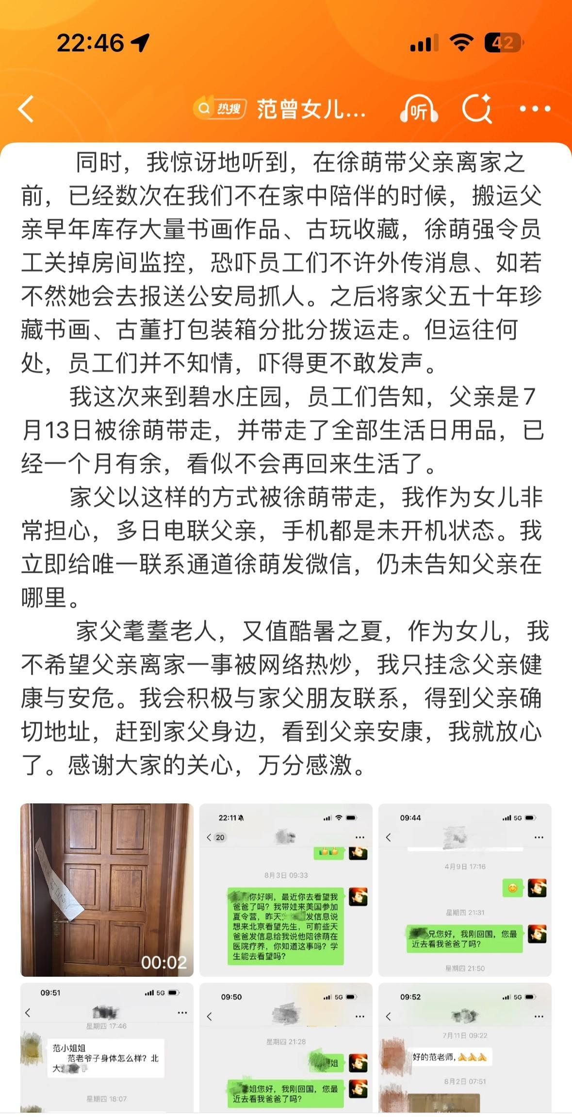 刷到范曾女儿回应那事儿了,越看越上头!老爸被继母徐萌带走,家里的字画被搬… 我全