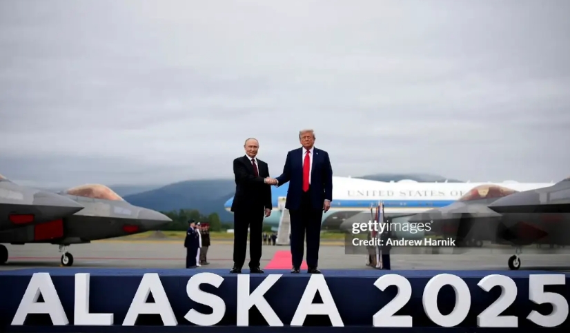 地上铺着红地毯,还特地做了一个牌子:ALASKA 2025,就和重大国际组织会议一样。
