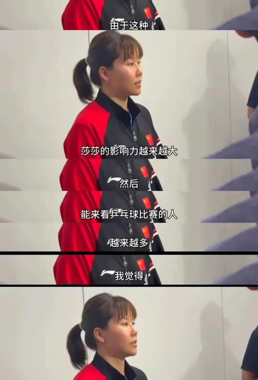 陈幸同虽然赢了孙颖莎,她为什么要感谢孙颖莎? 日本横滨冠军赛, 陈幸同赢了孙颖莎, 记者采访的时候说了实话。 她说:孙颖莎影响力越来越大,更多的人来看球,这是一件很棒的事! 其实也就是说, 莎莎让乒乓球更火, 大家也都能从里面获得一杯羹, 所以同同感恩莎莎!