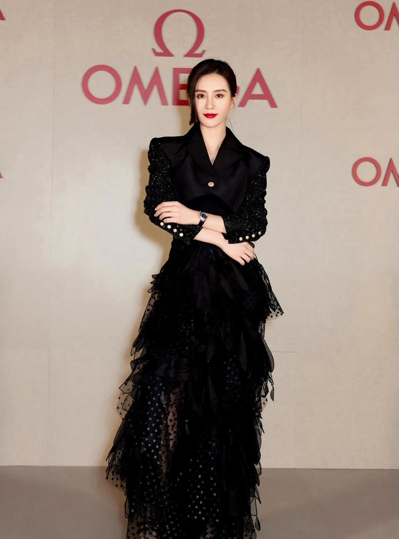 #刘诗诗#黑纱曳地时,西装已裁出棱线。都市风掠过肩头,把飒爽与柔媚,一同缝进裙褶