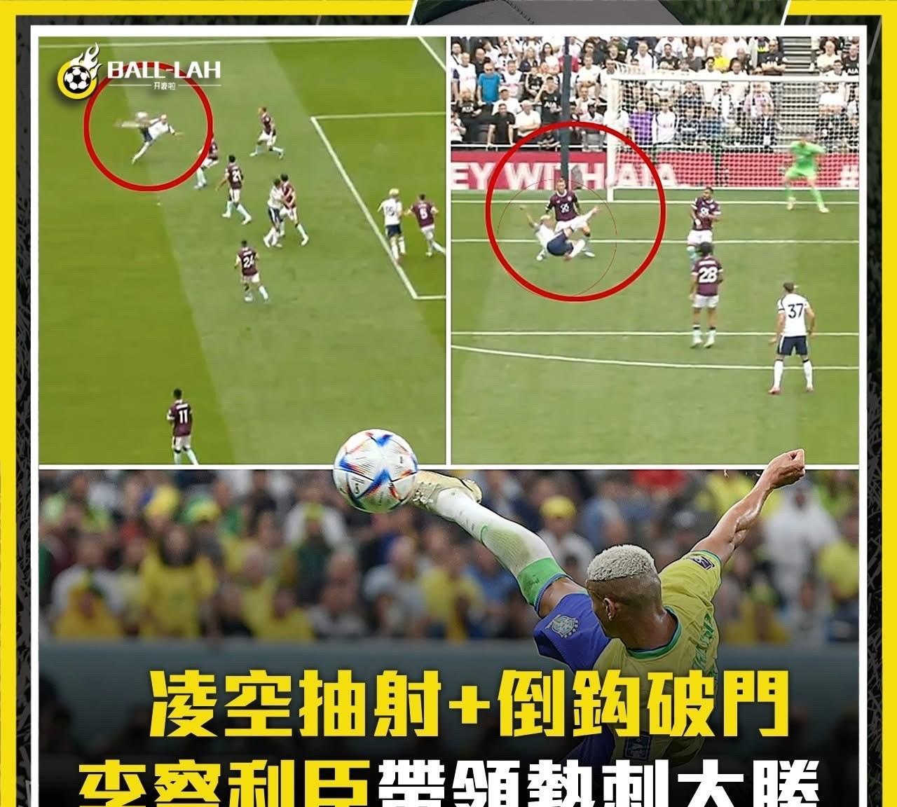 热刺队在对阵伯恩利足球俱乐部的比赛中完全占据上风,并在新任主教练托马斯·弗兰克的带领下赢得了他们的首场英超比赛。 这才刚刚是英超开始的第一轮啊,理查利松就用一记无解的倒挂金钩,几乎已经提前锁定了本赛季的英超最佳进球! 干,才第一轮而已啊! 理查利松梅开二度,帮助热刺3比0轻取升班马伯恩利,成功从欧超杯点球大战不敌巴黎的阴影中走出来。 理查利松也不是第一次打进倒钩了,2022年卡塔尔世界杯,理查利松就曾完成一次这样的射门,看来是有练过的。 本赛季会是理查利松爆发的一年吗? 目前,理查利松排在英超射手榜的第一位! 理查利森和布伦南·约翰逊在7分钟内连入两球,帮助热刺3-0领先伯恩利。 托特纳姆热刺3-0伯恩利 斯科特·帕克的球队在上半场落后后发起了强劲反击,但未能把握住机会,最终被托马斯·弗兰克的球队惩罚。 2017年远渡英格兰加入沃特福德,2018年加盟埃弗顿,其在2018-2019赛季一呜惊人,成为球队当季最佳射手。