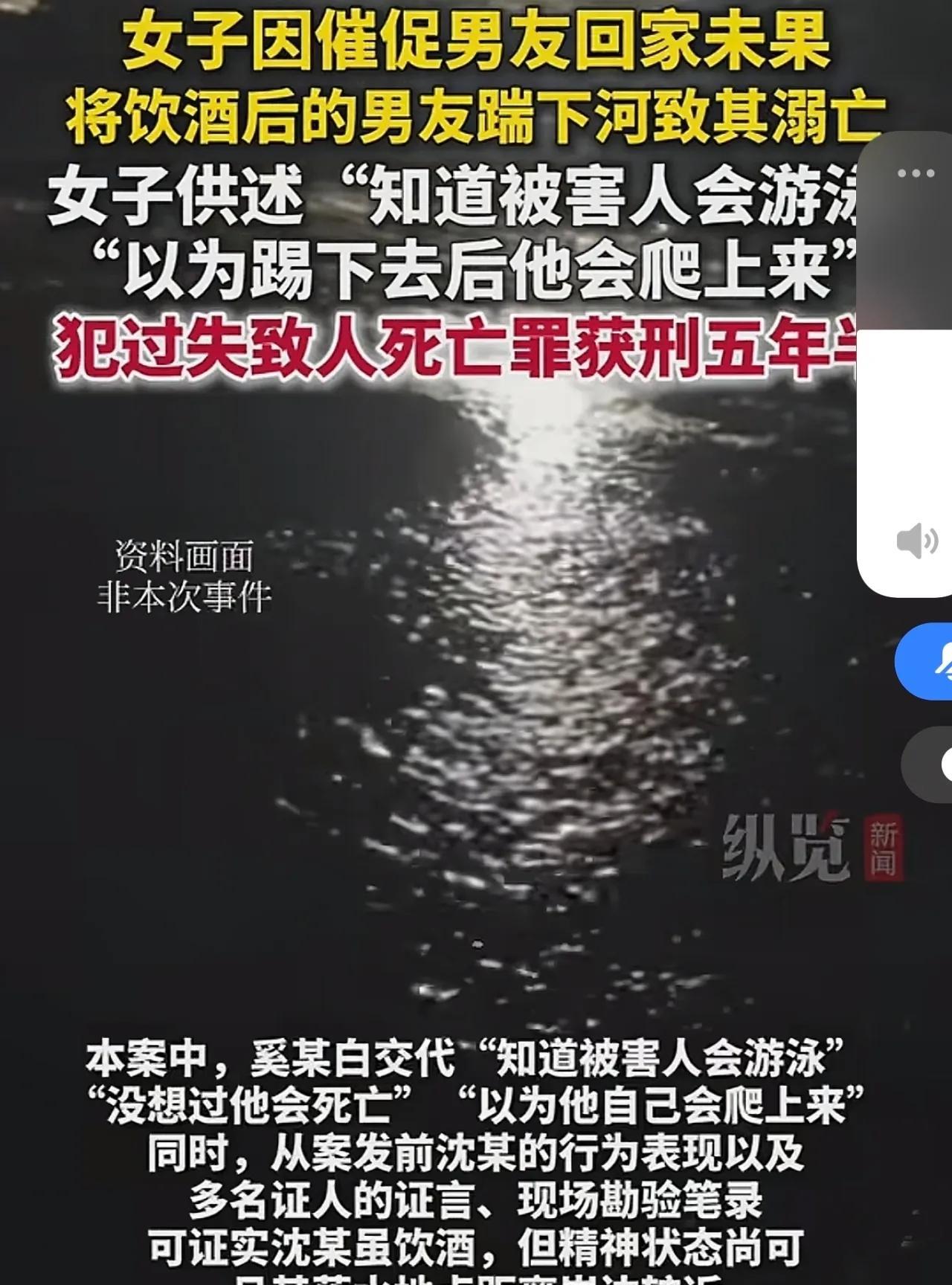 上海,一男子下半夜2点多,在河边喝酒祭祀亡父,女友催他回家睡觉,男子不听,女友一怒之下,绕到男子身后,一脚把他踹河里,然后扬长而去,她本以为男子会游泳,能自己爬上岸,万万没想到,仅仅几分钟后,男子活生生一个人,就变成一具遗体,女子彻底傻了眼,男子家属认为女子故意杀 人,而判决结果出乎所有人意料。 8月15日,据纵览新闻报道,2020年2月3日,奚女士跟朋友聚餐,大家好久不见,一边开怀畅饮,一边谈笑风生。 奚女士酒量可以,不知不觉就喝了2瓶红酒,还是脸不红心不跳,意犹未尽。 10点多时,奚女士的男友沈某,带着朋友也赶来了,人多了热闹了,当然也少不了喝酒助兴,奚女士又喝了几瓶啤酒。 大家吃吃喝喝,杯盘狼藉,酒足饭饱后,聚餐结束了,大家各回各家,各奔东西。 但奚女士和男友沈阳没有回家,竟然又去大排档吃了夜宵,两个人都有点酒量,吃夜宵时,又每人喝了几瓶啤酒。 酒至浓处,沈某悲从心来,他想起去世的父亲,不觉泪湿眼眶,父亲活着时,他们父子俩感情深厚,经常在一起小酌,如今,父子俩阴阳两隔,让沈某痛彻心扉。 下半夜2点多,两人吃完夜宵,沈某又买了酒,去河边喝酒祭拜父亲,奚女士默默陪在男友身边。 沈某坐在河边,缅怀亡父,奚女士看天太晚了,两次催沈某回家,可他却充耳不闻,这让奚女士很是恼火。 在她看来,她理解沈某对父亲的感情,可人死不能复生,这大半夜的,差不多就得了,怎么还没完没了了呢? 看沈某一意孤行,奚女士也来了脾气,她竟不计后果,绕到沈阳身后,抬起一脚,直接把他踹进河里。 这本是情侣之间的小摩擦,奚女士之所以把男友往河里踹,是因为沈某会游泳,她觉得沈某自己爬上岸完全没问题,她就要给他一个下马威,让他长长记性,知道不听自己的话没好果子吃。 沈某冷不丁被女友踹河里,气的他大骂奚女士,奚女士更来气了,扭头就走,可几分钟后,消气了的奚女士冷静下来突然害怕了,虽然沈某会游泳,但她忽略了他喝了很多酒,不会体力不支,有什么危险吧? 奚女士想到这里,返身就往河边跑,跑到她把男友踹河里的位置,她不觉脊背发凉,因为河里和岸边都没沈某的影子,难道他没爬爬上岸? 奚女士彻底慌了神,她赶紧报了警,凌晨5点左的尸体右,沈某的遗体被打捞上来,看到活生生一个人,如今变成一具冰凉尸 体,奚女士的悲痛可想而知。 奚女士就是任性而为,明明沈某会游泳,她把他踹河里前,对他能爬上岸深信不疑,如果她知道会是这个结果,说啥也不会这么莽撞。 但沈某家属可不这么认为,他们觉得奚女士是故意的,跟沈某闹点矛盾,就对他下死手,真是太可恨了。 但法院从案发前沈某的行为,和跟他喝酒的多人的证人证言,证明了沈某虽然没少喝,但精神状态可以,而且,落水点离岸边很近,再加上他会游泳,所以,奚女士判断他能自己爬上岸有一定的依据。 所以,法院认为奚女士不构成故意杀人,也没犯罪动机,构成过失致人死亡罪,被判处有期徒刑5年。 有人说,一条活生生的命啦,这让男孩的父母怎么办,以后怎么活下去,而这个女人可能不到五年就可以出来了,还可以继续为祸人间。 应该判处死刑!这是故意杀人!因为男的喝酒了,即使平时会游泳现在也只有死路一条。 不是故意杀人?那么,一个人拿着刀子扎了别人一刀呢?知道被害人会反抗呀,以为扎下去也没事儿,毕竟他有力气反抗的…… 《刑法》第232条规定:故意杀人的,处死刑、无期徒刑或者十年以上有期徒刑;情节较轻的,处三年以上十年以下有期徒刑。 根据《刑法》第232条,故意杀人罪需证明行为人“明知行为会导致死亡结果,并希望或放任该结果发生”。 本案中,奚某知晓沈某会游泳且案发地点靠近岸边,轻信其能自行上岸。 奚某踹人后短暂离开又返回寻找并报警,证明其未追求或放任死亡结果。 法院认定,综合证人证言及行为逻辑,奚某主观上属于“过于自信的过失”,即预见风险但轻信能够避免,而非“故意放任或追求死亡结果”。 《刑法》第233条规定:过失致人死亡的,处三年以上七年以下有期徒刑;情节较轻的,处三年以下有期徒刑。本法另有规定的,依照规定。 根据《刑法》第233条,过失致人死亡需满足“行为人未尽合理注意义务导致死亡”。 奚某明知沈某饮酒后身体控制力下降,仍对危险行为,把他踹人入水持轻率态度。 奚某的踹击直接导致沈某落水,而沈某因醉酒及低温环境丧失自救能力,溺水死亡为直接后果。 法定刑期3-7年内,法院综合奚某自首、赔偿意愿等情节判处五年半,符合法律规定。 分舆论认为“杀 人偿命”,主张定故意杀人罪。但刑法严格区分主观恶性程度,本案量刑体现了罪责刑相适应原则。 有人说,明明是故意行为,怎么变成过失杀人,虽然会游泳,但明知他喝了酒啊,酒后不能驾车,说明酒后人不清白,哪个成人不知道?心肝宝贝的养这么大被人一脚踹下河淹死了,当父母的怎么活? 对此,你怎么看?