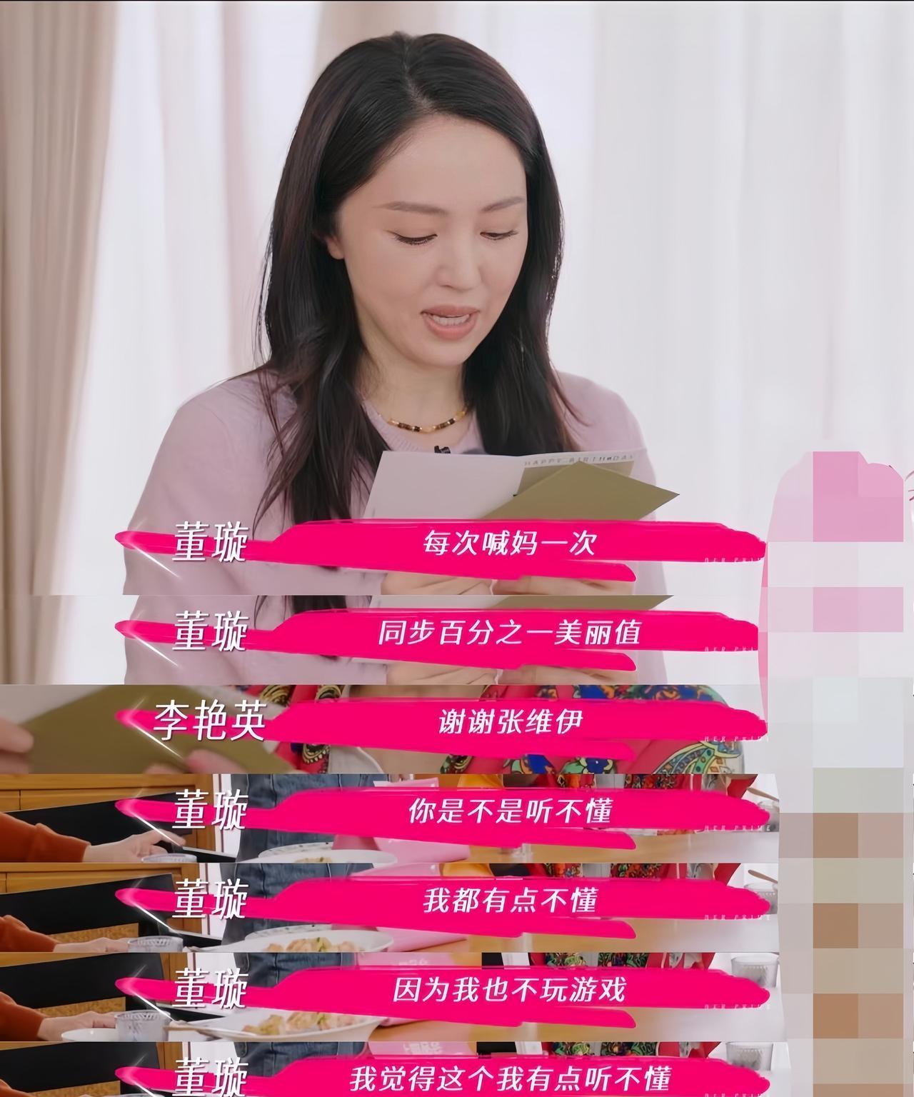 真的不是剧本吗? 如果不是的话,也真是难为董璇妈妈了[笑哭]女婿给写的祝福信,是一句也没听懂。 董璇妈妈过生日,张维伊没到场,但是给岳母写了一封信。 这封信,别说董璇妈妈听得一头雾水,就是董璇也念不明白。 信上说:为您定制的葫芦项链已安装福禄寿3.0,终极补丁,福气外挂,每喊一次妈同步1%,什么幸福buff,永葆c位buff,福禄结界…… 听得董璇妈妈蒙头转向的,满脸不解。全篇都是游戏里的词,试问一个60多岁的老岳母能听懂哪句? 就这封信,不像一个30多岁喜剧人的水平,倒像一个十几岁游戏迷的网瘾少年写的。