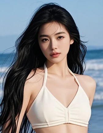 海平线吞没半轮落日时,她的剪影扬起发浪比波涛更汹涌