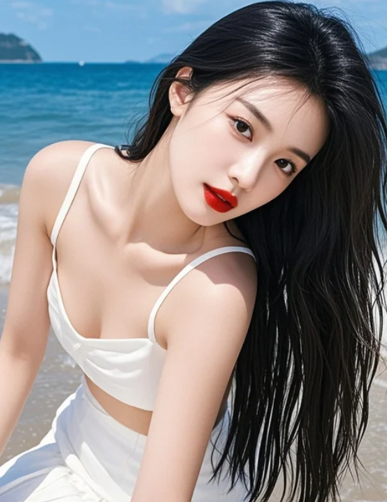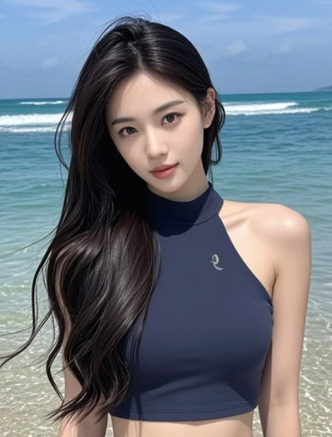 海平线吞没半轮落日时,她的剪影扬起发浪比波涛更汹涌