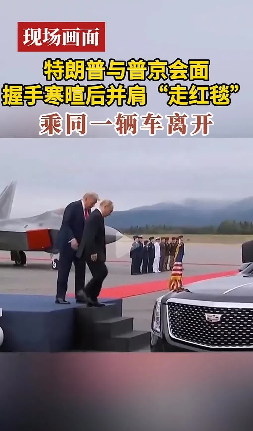 普京不是吓大的! 普京单刀赴会阿拉斯加军事基地与川普相见,当俩人走上红地毯,首先天上来个下马威,几架F22隐身战机编队从头顶飞过,只见普京不屑地微微抬头望了望,红地毯两边也摆放了几架F22。然后不带随从只身上了川普为他准备的汽车,俩人同坐一辆车扬长而去。这气场、这胆量,也只有普京了。与会前几天,还有很多人担心普京的安全,会不会被逮捕?会不会被暗杀?等等。看来小瞧普大帝了,毕竟普京不是吓大的!这场峰会普京取得完胜。