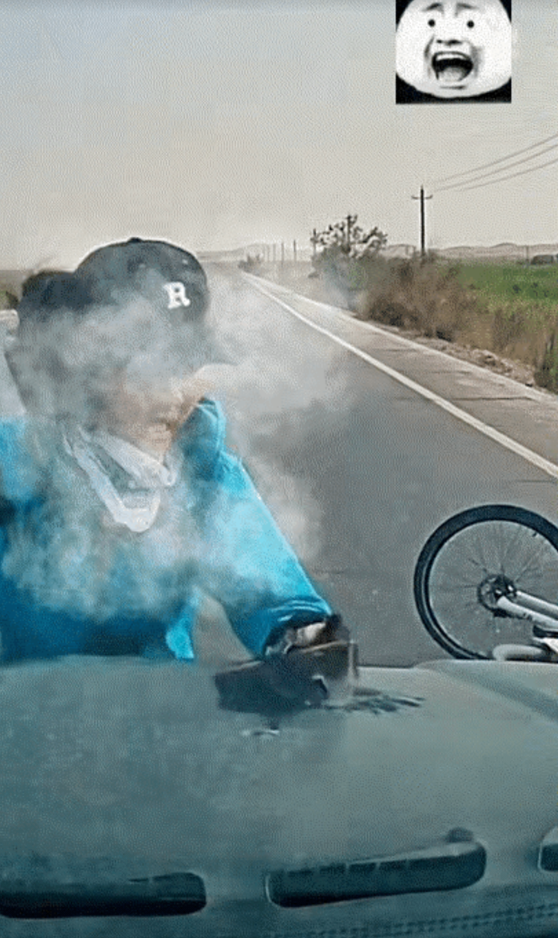 本来骑累了气喘,你坐车上按催喇叭,一下子这女的,火大了