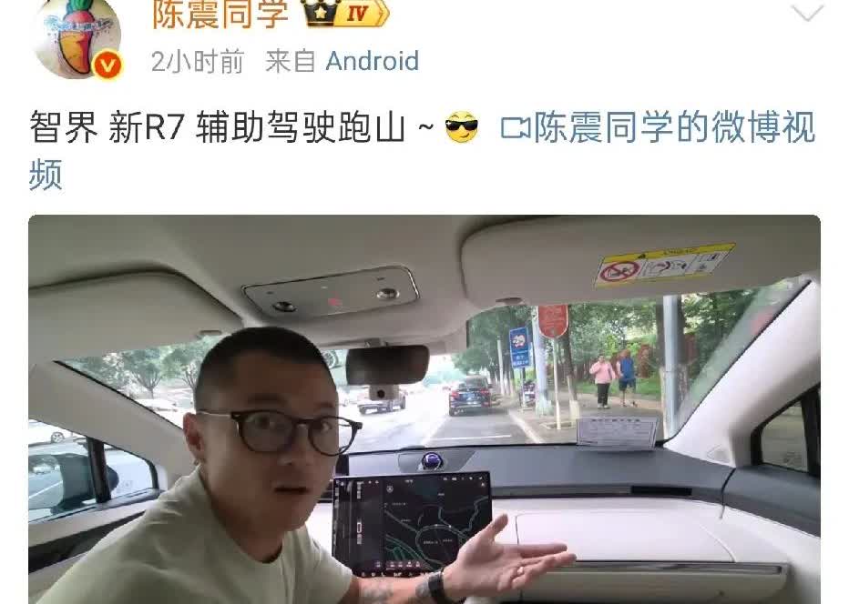 陈震今天试驾了智界新R7,还体验了它的智驾功能。这一回,陈震并没有选择以往去他公