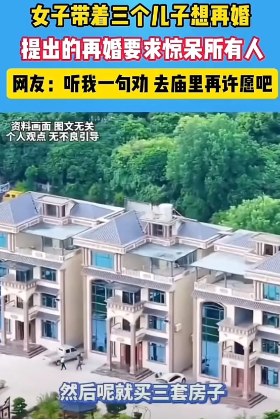好消息,一个女的,年轻漂亮身材好,离异带三个儿子,想再找个老公,要求也不高,彩礼一百万,每个月再给五万生活费,因为她带三个孩子,也没法去上班,然后再给三个孩子一人买一套房子,也不能让她再生孩子,毕竟一结婚就白捡了三个儿,完全不用担心养老和继承家业的问题,但是不能勉强孩子叫爸爸,更不能改姓,有没有哪位缺儿缺媳妇,不缺钱的有志青年,这可是大好机会,三个大胖儿,喜欢的可以联系!!!