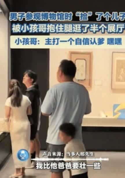 真绷不住了! 河南郑州,一男子参观博物馆时,突然觉得有什么东西拉着他的腿,低头一看,发现是个小男孩,男子以为他往前走几步,男孩就不会跟了,谁料,男孩竟抱着他的腿,逛了大半个展厅,而男孩看到爸爸,在不远处拍他时的神情亮了,网友:白捡一个大儿子! 这小男孩太逗了,抱着人家腿走半天都不撒手,邢先生脾气真好没赶他。爸爸在旁边偷偷拍,男孩发现后脸红得像苹果,那表情谁看都笑出声。多亏邢先生有耐心,孩子才没害怕,最后平安回到爸爸怀里。家长们带孩子出门一定得盯紧点,人多地方容易走散。但这份天真和温暖真是生活的小礼物!
