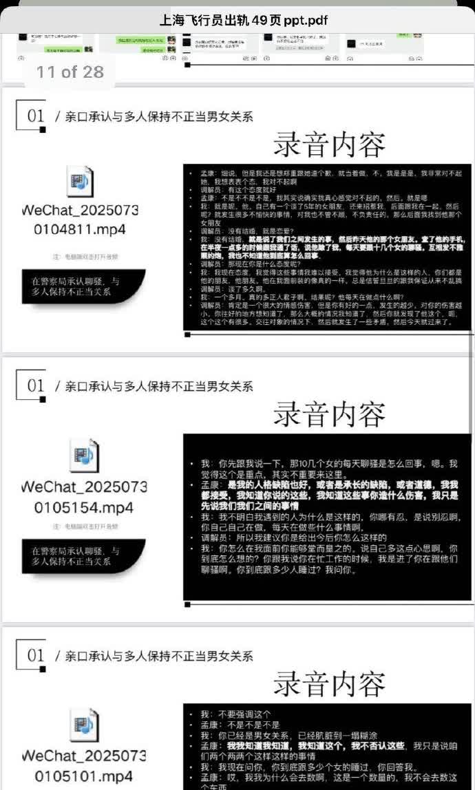未婚不存在出轨,女子举报飞行员男友出轨49页ppt内容曝光,结果小仙女集体破防。 近日,上海一女子通过49页PPT举报金鹏航空飞行学员孟某,称自己与其恋爱期间和10余名女子保持不正当关系。根据ppt内容显示,男方曾多次承认自己出轨,并且还污蔑女方仙人跳,有案底。不过这些ppt内容曝光后,有网友联想到了之前大连工业大学出轨老外的女大学生,当时有不少小仙女辩护称未婚不存在出轨,已婚出轨也不犯法,结果现在用在飞行员出轨事件上,小仙女就集体破防了,咱就是说这个世界什么时候能不双标啊
