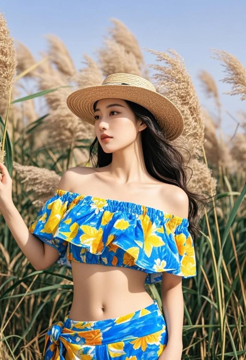 静谧的呼吸:她与芦苇共享这一刻的安宁