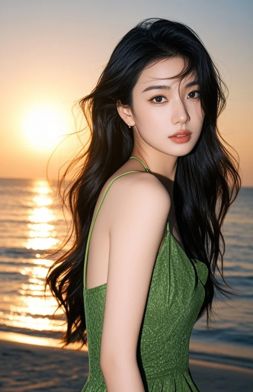 在海边,她的美丽如同盛开的花