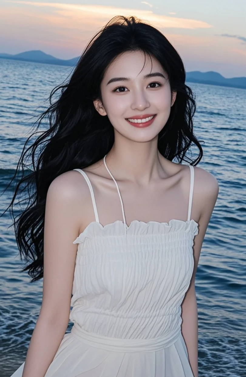 微笑中透出的气质,在海边更加迷人