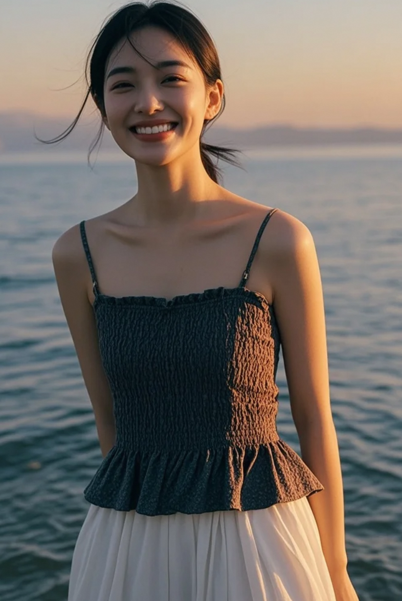 裙摆随海风轻舞,她站在那里成风景