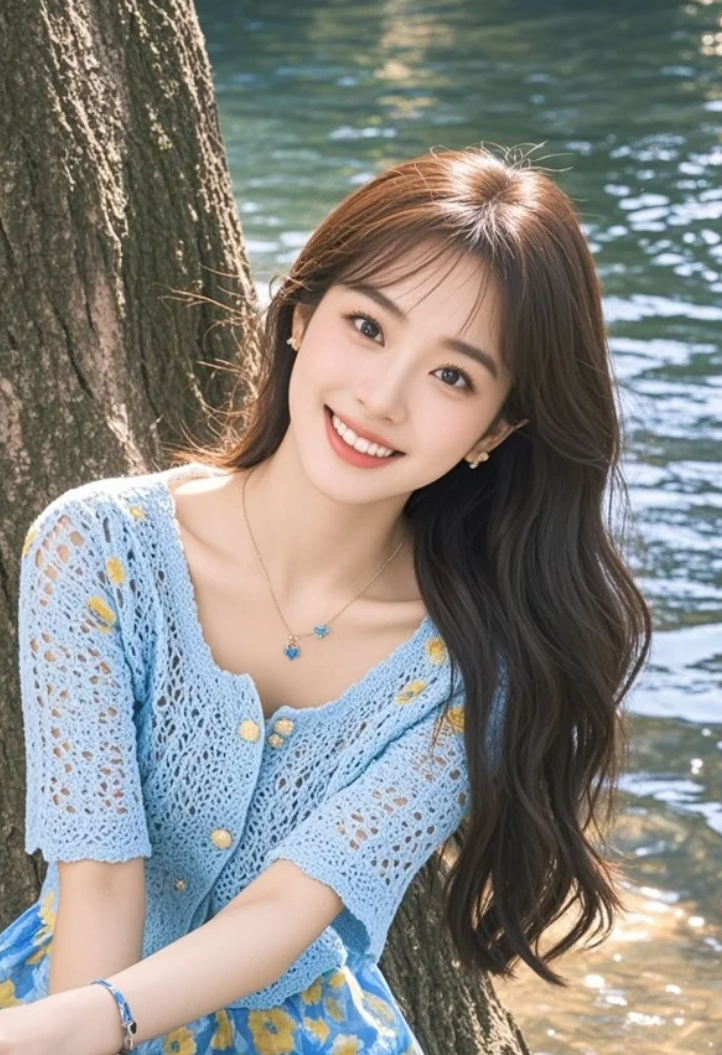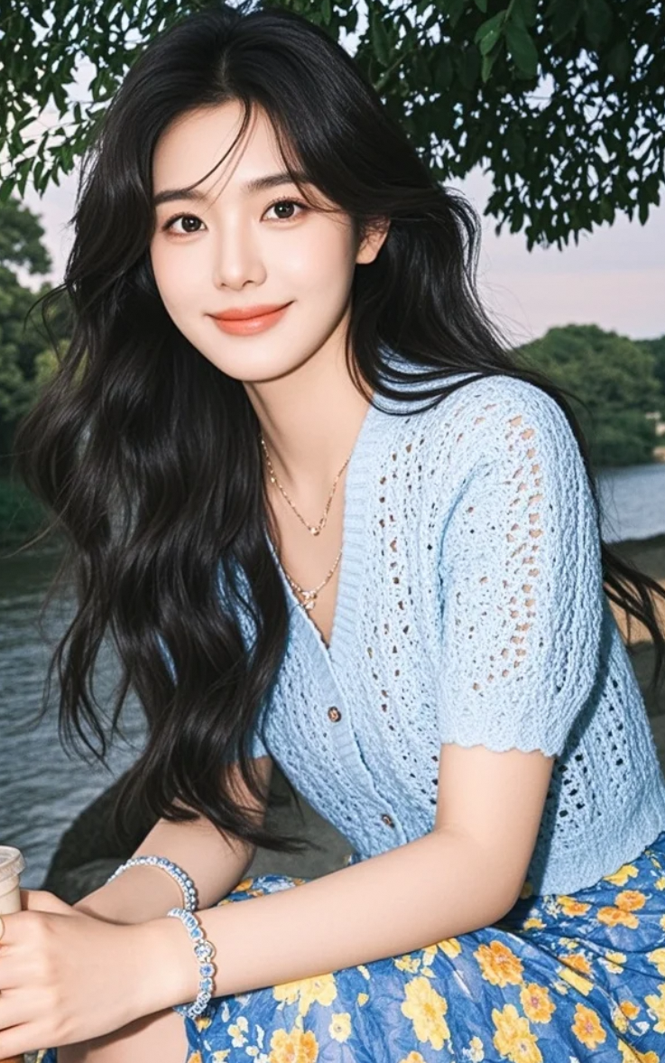 浅蓝色开衫与蓝黄长裙,在她身上碰撞出梦幻火花