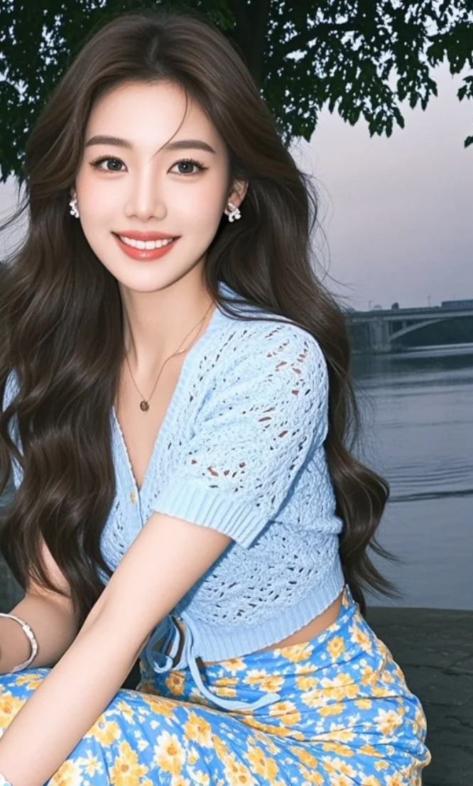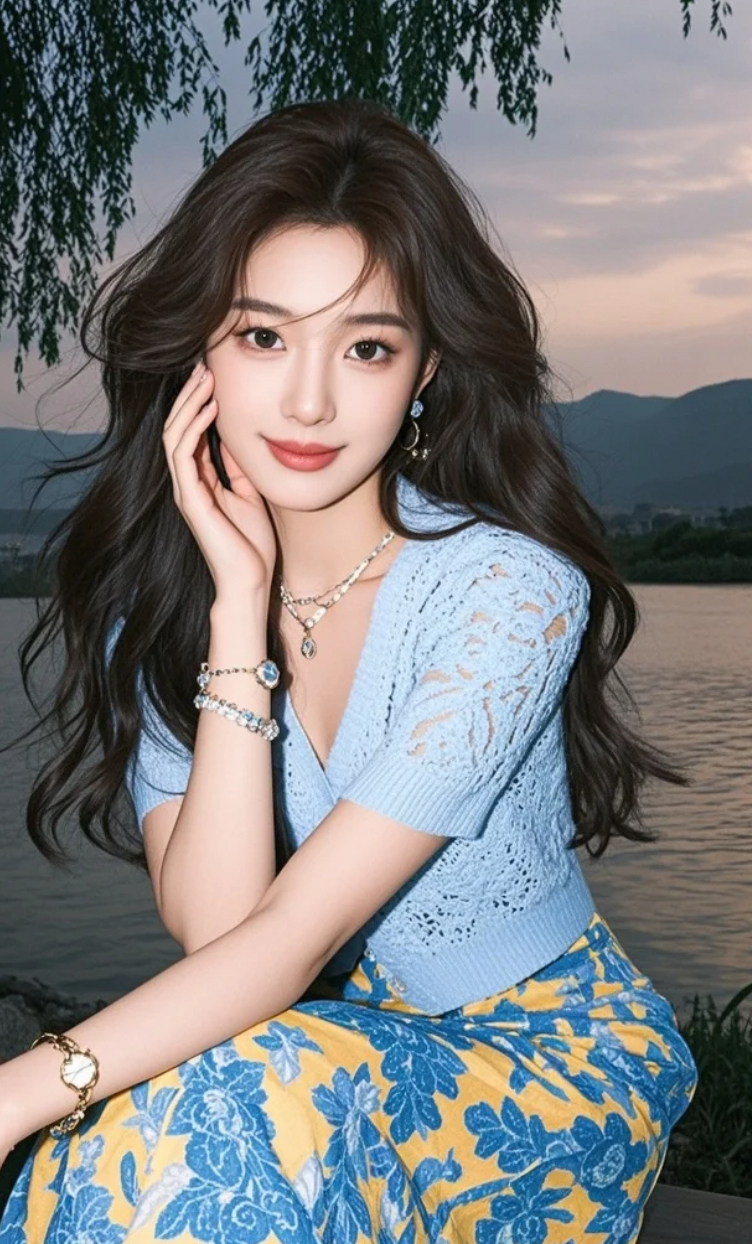 浅蓝色开衫与蓝黄长裙,在她身上碰撞出梦幻火花