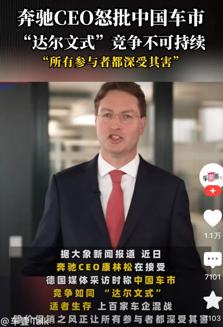 他怒批我们国家的车企用用“达尔文式”的竞争,给汽车行业会带来灾难性的后果,这样的竞争方式是不可持续的。并表示,所有的参与者都将深受其害,其中包括消费者。